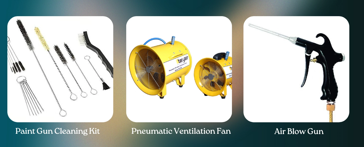 High-performance spray-painting tools and complete paint shop setups for precise and efficient operations.